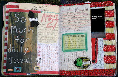 I've accepted another challenge having to do with journaling. I think this one will be easier to follow through on. Journaling Everyday is the challenge. You don't need to finish a page a day or anything, just do something in your journal even if it is only 10 minutes worth of something. I signed on for August, but I actually started July 28. I love the spreads that Julie shares where she shows just what she added each day until the spread is done. Maybe I'll try that, too.
